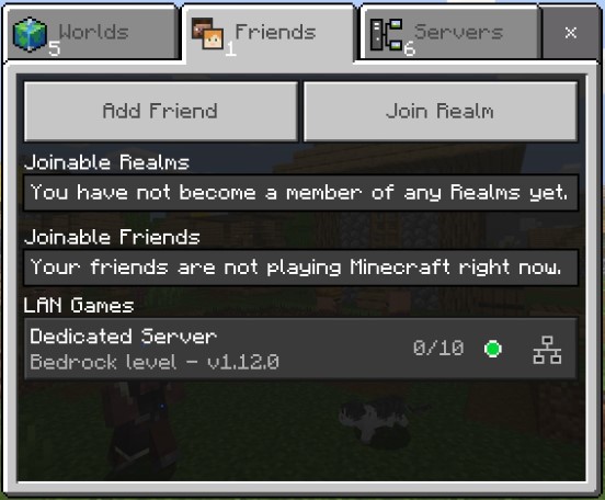在局域网中运行容器时,你可以在 "朋友" 标签的 "局域网游戏" 部分找到并连接到专用服务器,例如: