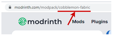 项目页面 URL,例如 https://modrinth.com/modpack/cobblemon-fabric。如下所述,这可以是模组包版本页面 URL。